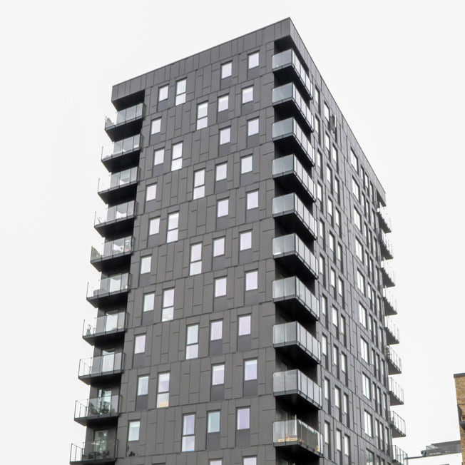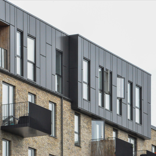 Øresund Strandpark i København er et markant boligbyggeri, hvor aluminium spiller en væsentlig rolle i facadens æstetik og funktionalitet. Projektet, udviklet af Skanska i samarbejde med Henning Larsen Architects, omfatter et 14-etagers højhus og flere boligblokke på op til syv etager. Facaderne er designet med fokus på moderne udtryk og holdbarhed, hvor anvendelsen af aluminiumsplader bidrager til bygningernes lette og elegante fremtoning.
