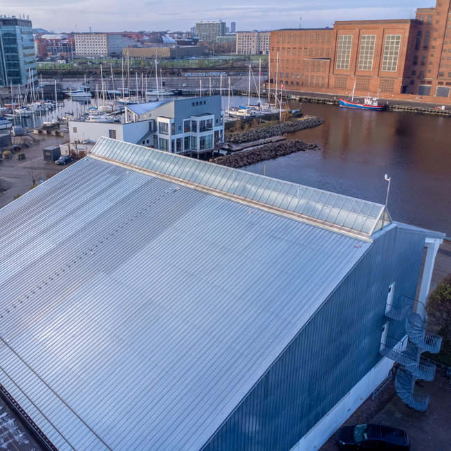 Muncholm har leveret zinkprofiler i høj kvalitet, der giver bygningen et eksklusivt og tidløst udtryk. Zink er et naturligt og holdbart materiale, som patinerer smukt over tid og modstår det krævende maritime miljø ved havnen. Løsningen sikrer minimal vedligeholdelse og en lang levetid, samtidig med at den bevarer sin karakteristiske overflade og formstabilitet.