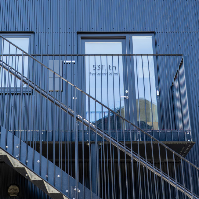 På Rentemestervej i København er der opført et moderne boligbyggeri, hvor arkitektur og materialevalg går hånd i hånd. Facader og tage er udført i falsbar lakeret aluminium, som giver bygningerne et stramt og nutidigt udtryk med rene linjer og præcise detaljer.